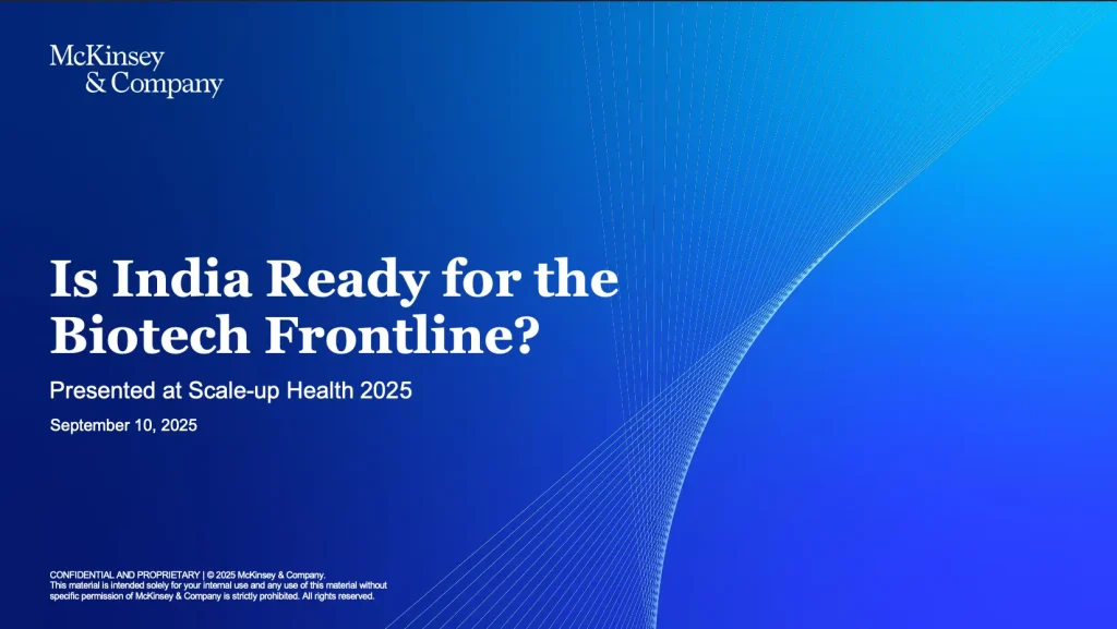 Our knowledge partners McKinsey & Company set context ahead of our biotech panel with a presentation on the topic ‘Is India Ready for the Biotech Frontline?’.